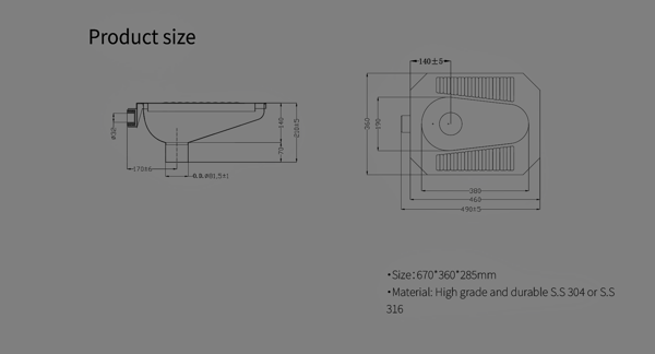 Introducing our premium Stainless Steel Squat Toilet, the perfect solution for public and commercial restrooms seeking durability and low-maintenance ease. Crafted from high-quality stainless steel, this squat toilet guarantees longevity and resistance to wear and tear. Its ergonomic design includes a slip-resistant surface on the sides for the ultimate in user safety. Available in a sleek silver finish, this squat toilet not only offers a hygienic and robust solution but also adds a modern touch to any restroom. Ideal for high-traffic areas, its easy-to-clean surface ensures minimal upkeep and maximum efficiency.