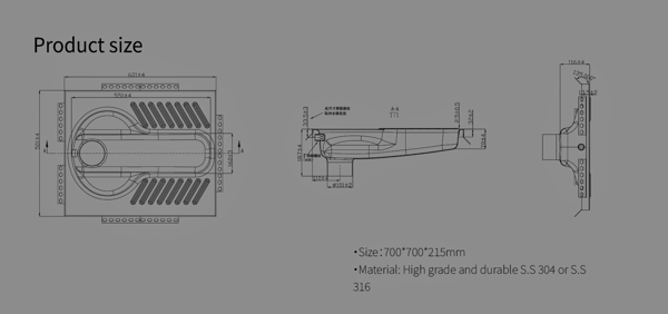 Experience unmatched durability and hygiene with our premium stainless steel squat toilet. Expertly crafted for resilience, this toilet boasts a gleaming polished surface that ensures effortless cleaning and maintenance. Perfect for high-traffic public restrooms, it serves as a dependable and robust solution for any sanitary facility. Available in a sleek silver finish and adaptable to various installation needs, this squat toilet exemplifies both form and function.