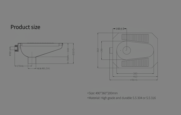 Presenting our premium Stainless Steel Squatting Toilet, designed for unmatched durability and superior hygiene. Constructed with high-grade stainless steel, this toilet combines strength and reliability with a sleek appearance. Featuring an efficient flush mechanism for easy maintenance, it is an ideal choice for commercial and public restrooms. Available in a polished metallic finish and various sizes to fit your space requirements, this squatting toilet ensures lasting performance and cleanliness.