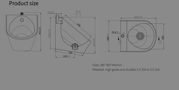 Stainless Steel Urinal DE-U307B